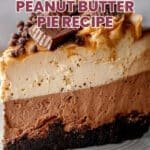 A rich and creamy no-bake Chocolate Peanut Butter Pie featuring a crunchy Oreo crust, layered chocolate cream cheese filling, and a smooth peanut butter cream topping, perfect for dessert lovers craving a decadent treat.