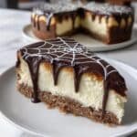 - Decorate Cheesecake: Spread the chocolate ganache evenly over the cooled cheesecake. Pipe melted white chocolate in a spiral pattern on top, then drag a knife through it from the center outward to create a spider web effect.